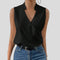 Blusa envolvente sin mangas con un moderno escote en V y un elegante detalle de cuello alto estrecho. La ligera y fluida tela ofrece una sensación agradable, combinando perfectamente con jeans, faldas o looks de oficina.