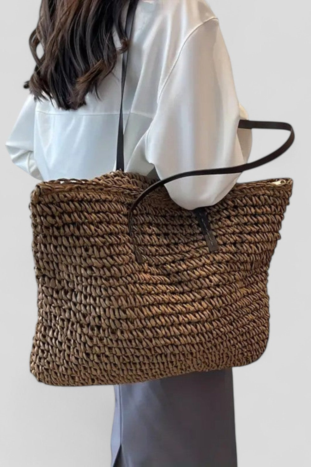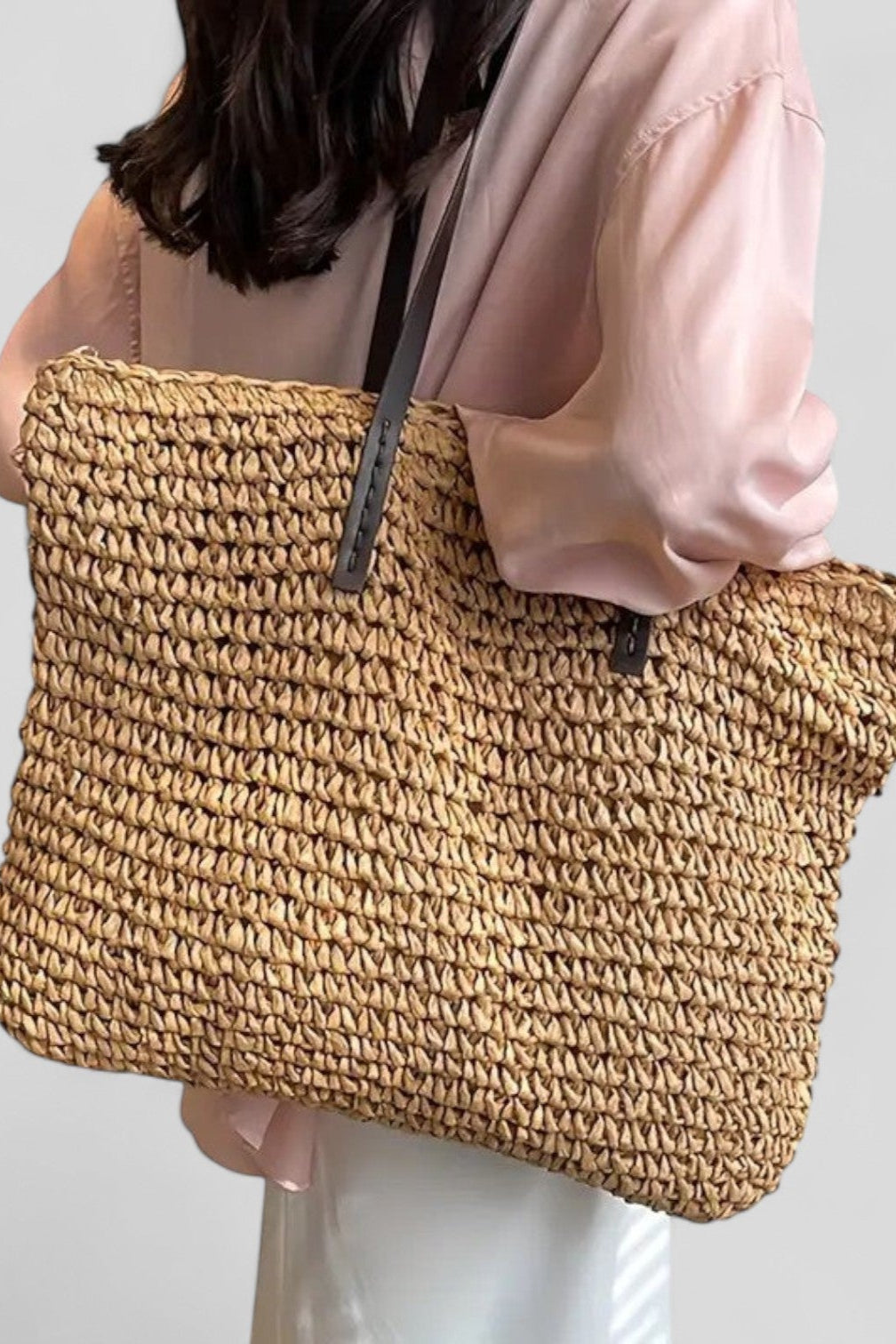 Descubre la bolsa bohemia perfecta con un aspecto natural y diseño hecho a mano. Su tejido grueso en verde oliva se combina armoniosamente con correas de cuero sintético oscuro, creando una estética única y elegante, ideal para el verano. ¡Llévala contigo a la playa o en tus paseos relajados por la ciudad!
