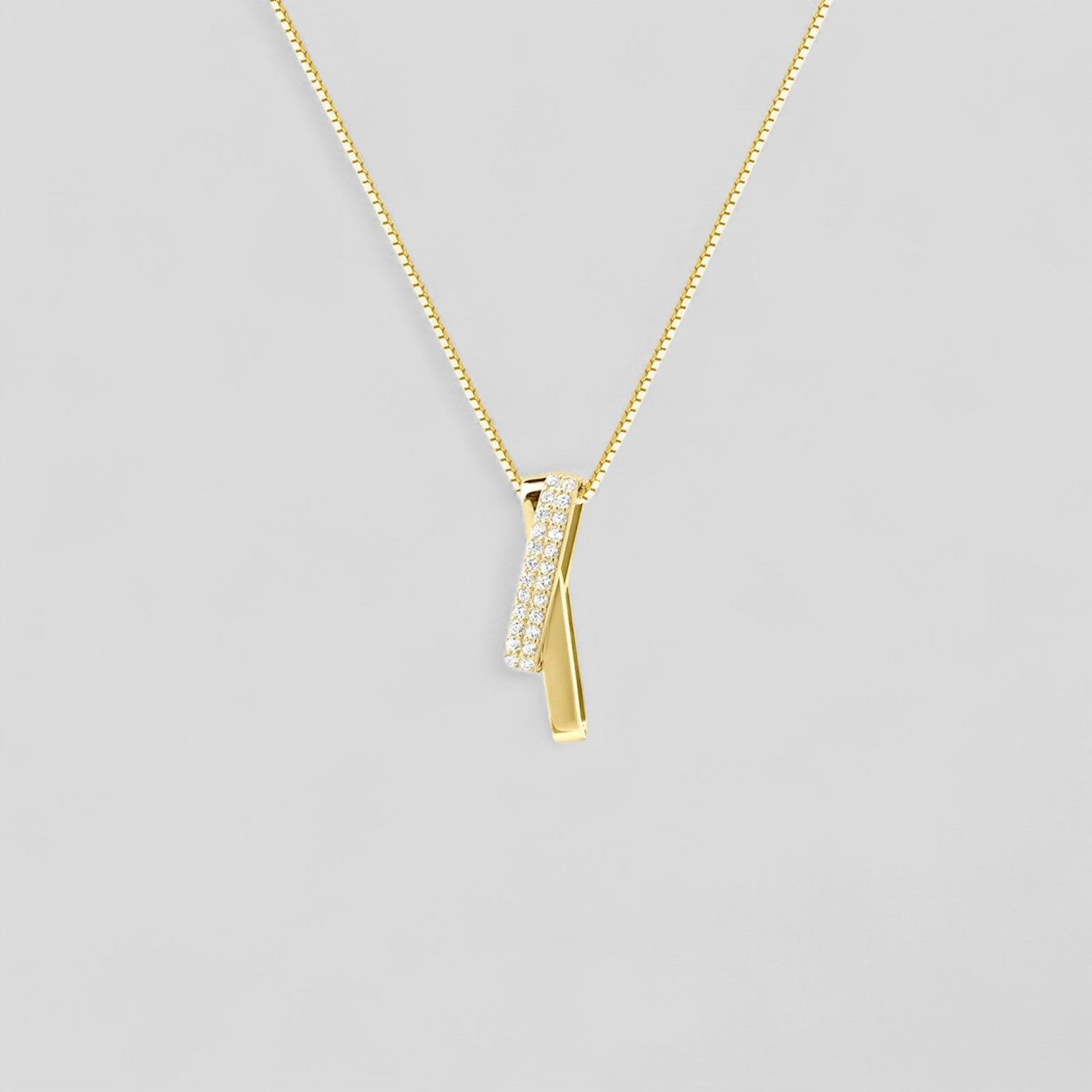 Elegante colgante de cadena en forma de barra sencilla con discretas y brillantes incrustaciones de circonita. Este diseño minimalista está sostenido por una delicada cadena de eslabones que ofrece un ajuste seguro al cuello mediante un discreto cierre de anillo de resorte. Las líneas claras y la alta calidad de elaboración confieren a esta joya una elegancia atemporal, brindando múltiples posibilidades de combinación para cualquier ocasión.