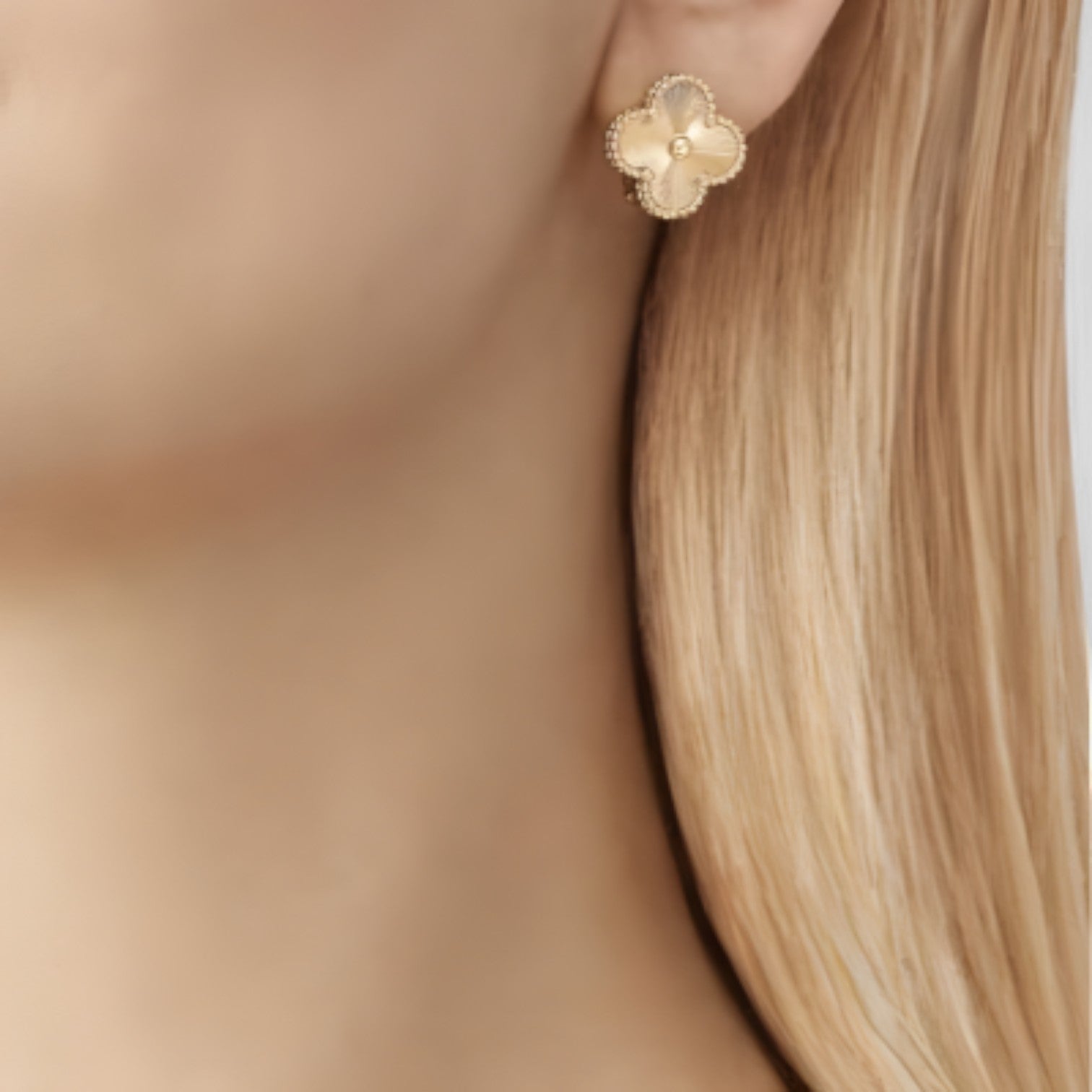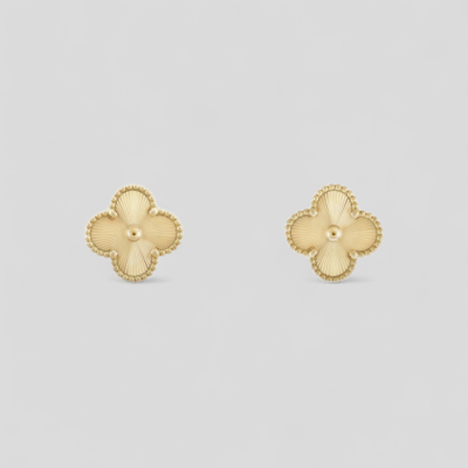 Descubre la elegancia clásica con un toque moderno en estos aretes con un motivo de flor estilizado y una superficie finamente estriada. Los pétalos redondeados están enmarcados por un delicado borde de perlas, ofreciendo una expresión femenina, sutil y de alta calidad.