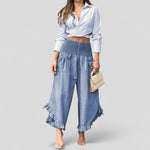 Pantalones de Tela Suaves y Fluidos: descubre la comodidad definitiva con estos pantalones de corte holgado, diseñados para un estilo casual. Su cintura elástica y área de muslo fruncida aseguran un ajuste perfecto.