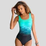Descubre nuestro clásico traje de baño con un escote redondo deportivo y tirantes anchos. Su suave degradado de color junto con un patrón moderno en la parte superior ofrece una silueta esbelta y una gran comodidad. Perfecto para nadar, disfrutar de días de playa o momentos de bienestar.