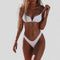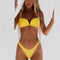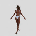Bikini minimalista con escote en V moldeado y tirantes delgados. La parte superior acolchada suavemente ofrece un soporte ligero y forma un escote natural, mientras que la braguita de corte alto alarga visualmente las piernas y resalta una silueta moderna. Perfecto para una aparición elegante en la playa o la piscina.