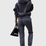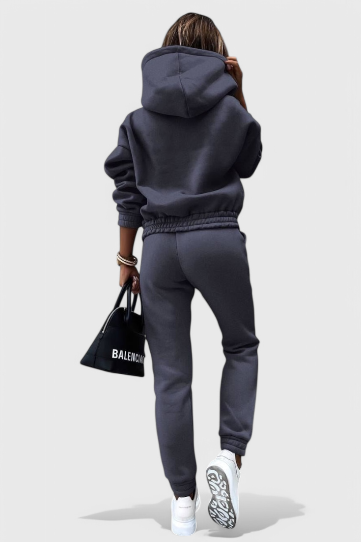 Tahlia es la combinación perfecta de comodidad elevada y estilo diario. Diseñado para moverse contigo—en casa o en movimiento—este conjunto de dos piezas combina una sudadera relajada con unos joggers de tiro alto que favorecen la figura. Desde momentos tranquilos en interiores hasta salidas informales, es tu nuevo favorito para un look pulido y agradable.
