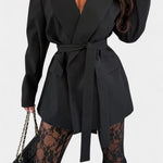 Un conjunto moderno y sofisticado que redefine el estilo de oficina y las salidas elegantes. Demelza combina un blazer oversized con cinturón que aporta estructura y versatilidad, junto a unos pantalones de cintura alta en encaje floral con un original corte sirena que estiliza y resalta la silueta. El equilibrio perfecto entre poder y feminidad, diseñado para destacar en cualquier ocasión.