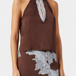 Una propuesta refinada que fusiona sensualidad y modernidad. Elvira combina un top ajustado y una falda coordinada, ambos realzados con paneles de encaje en contraste que aportan textura y feminidad. El equilibrio entre los tonos crea profundidad visual, mientras la silueta entallada perfila la figura con elegancia. Una opción versátil que se adapta tanto al día como a la noche con un aire seductor.