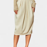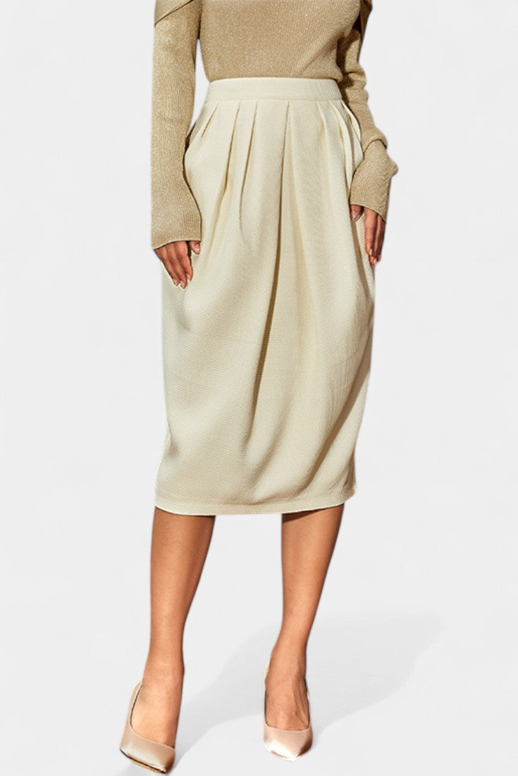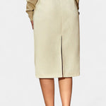 Una prenda que une sofisticación profesional con un aire contemporáneo. Genie destaca por su corte entallado de cintura media que perfila la figura con elegancia, mientras la abertura trasera aporta comodidad y un detalle sutil de modernidad.
