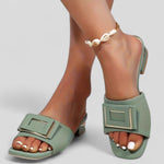 Estas mules con hebilla cuadrada y tacón bajo son perfectas para dar un toque chic a tu día a día.