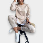 Un conjunto diseñado para quienes buscan practicidad sin perder elegancia. Perfecto para momentos relajados o días dinámicos, ofrece libertad de movimiento y sofisticación en cada detalle.