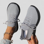 Zapatillas deportivas de punto con ajuste similar a un calcetín y diseño de cordones discreto. El material superior, de tejido ligero y transpirable, se adapta al pie y ofrece una sensación de suavidad agradable al usar.