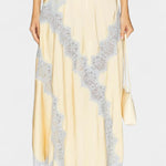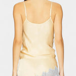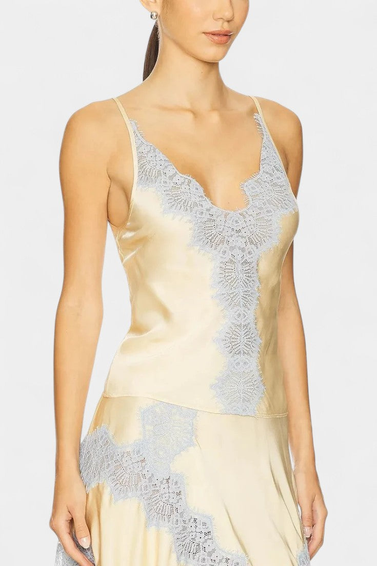 Un conjunto sofisticado que combina el brillo sedoso del satén con detalles románticos para un look chic sin esfuerzo. Mirren destaca con una camiseta sin mangas de tirantes finos y escote favorecedor, equilibrada por una falda midi fluida que aporta movimiento natural. El contraste de encaje en tonos delicados añade un guiño retro francés, transformando este diseño en una propuesta refinada y versátil.